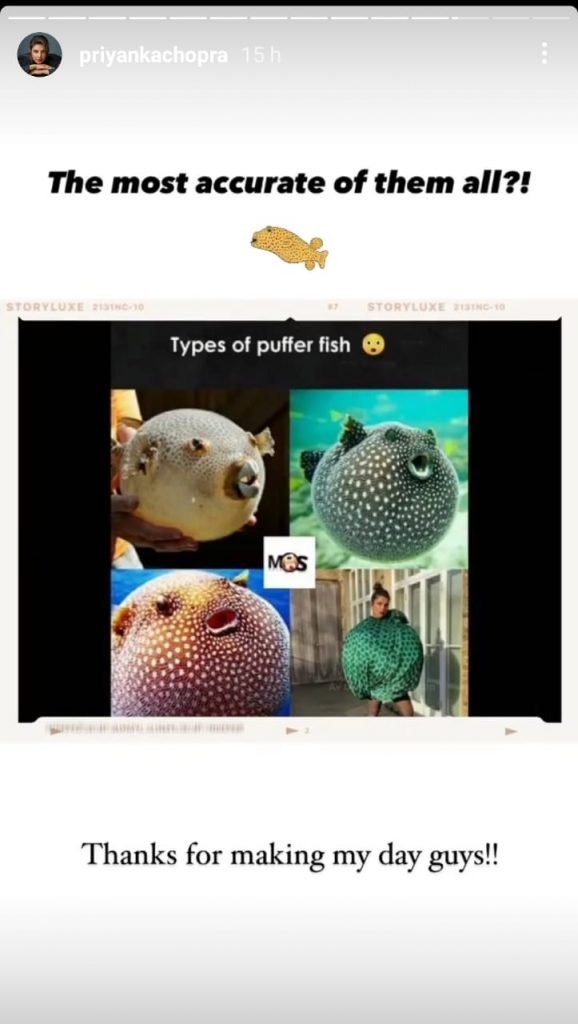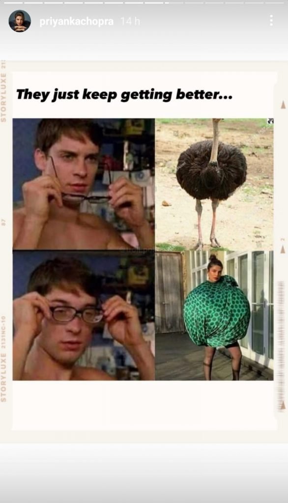 “This is too much,” Priyanka wrote in one of her Instagram stories while sharing more memes, she added: “They just keep getting better.” She wrapped the meme fest on Instagram with these words: “Thanks for making my day guys.”