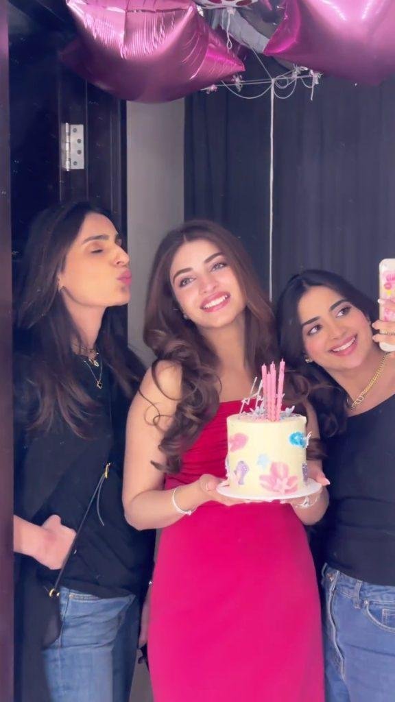 In the entertainment world, Kinza Hashmi is a well-loved actress. Originally dreaming of becoming a singer, she found success in acting instead. Kinza has many friends in the industry like Aiman, Minal, Saboor Aly, and makeup artist Sara Ali. She enjoys celebrating her special days in style, and recently, she did it again.