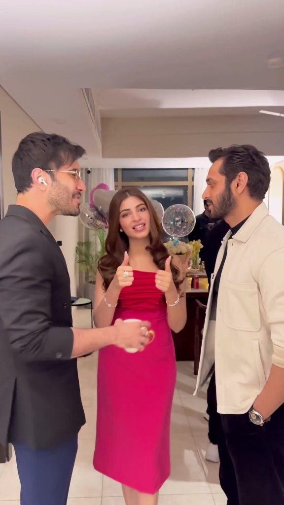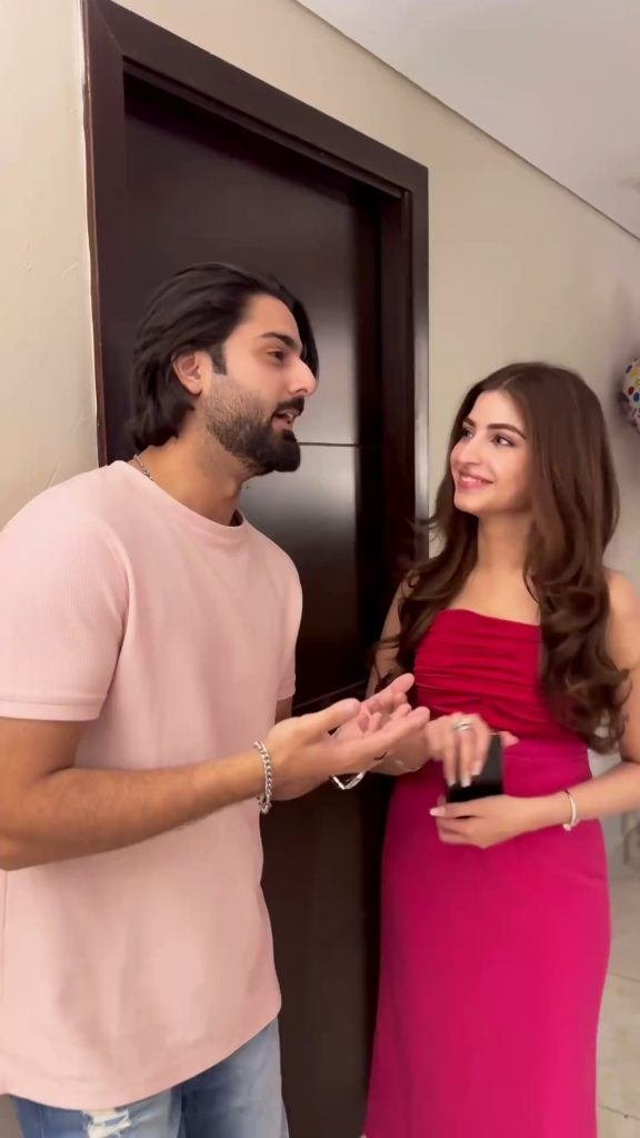 At her pre-birthday party, Kinza had a gathering with lots of famous people. Stars like Saboor Aly, Sadia Ghaffar, Wahaj Ali, Feroze Khan, Imran Ashraf, Zaviyar Nauman Ijaz, and Minal Khan were there to celebrate with her. Kinza looked beautiful in a red and pink dress, that complimented the pink balloons she was carrying. Will she pull out all the stops for the actual birthday? Who knows.