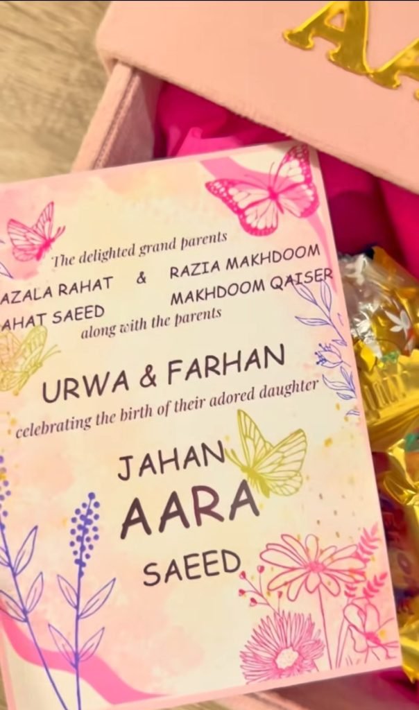 Fans extended their congratulations and best wishes to Urwa and Farhan on the special milestone in their journey as parents. Urwa shared a video on Instagram with this caption: “Sharing a precious little glimpse from our life! p.s. the last weekend before Ramazan when Aara met her entire family at home for aqiqa and wore my first shoes my mother saved all these years!”