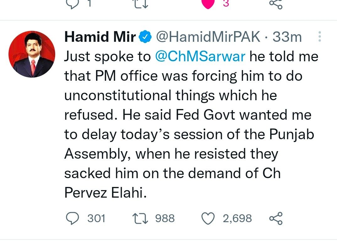 Punjab Assembly Speaker Pervaiz Elahi, while speaking on HUM News programme “Hum Meher Bokhari Kay Sath”, said that PM Khan was “100 per cent” in trouble because of the no-confidence motion against him.