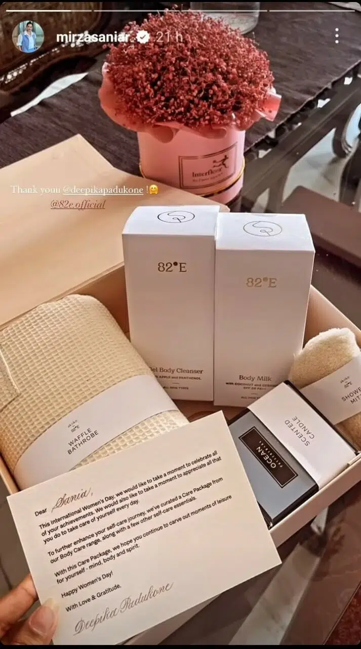 In her post, Sania also shared a message sent by Deepika, where the actress expressed her admiration for Sania’s achievements. Deepika highlighted Sania’s dedication to self-care and mentioned sending a care package containing various body care items as a token of appreciation.
