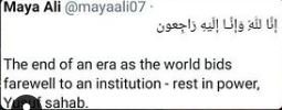 “Let’s this be a homage from Pakistan for the man who was loved by all,” he added.