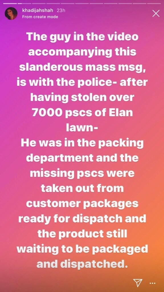 Khadija said that the man in the video was in the packing department from where he had stolen over 7000 pieces of Élan lawn.