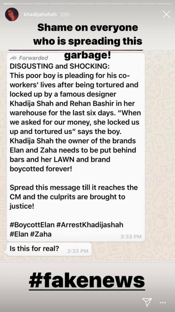 According to the man in the video, Shah, the founder and Creative Director of Pakistan’s leading luxury clothing brand, has not paid the worker for two months and has refused to let him leave the warehouse where business operations take place. The man added that Shah along with her associate Rehan Bashir has exploited 144 other labourers along with him and has refused to let them leave the warehouse.