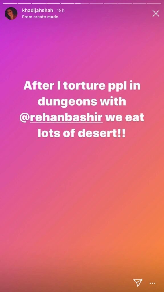 Later, the designer also cracked a joke on the situation, saying “After I torture people in dungeons with Rehan Bashir, we eat lots of dessert.”