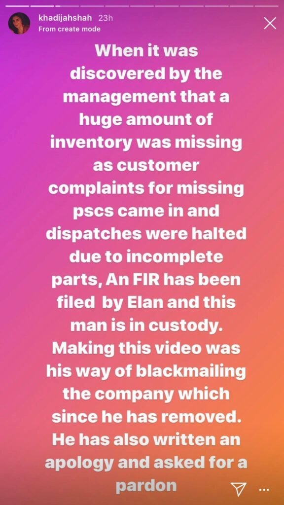 The designer added that the matter came to light when a huge amount of inventory was missing and customers began to file complaints for missing pieces. She said they had to halt dispatches due to incomplete orders. Shah added that an FIR has also been registered against the former employee and that he has asked her for forgiveness.