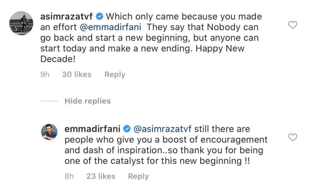 In response, Asim commented that the change only came about because Emmad made an effort. Asim also offered more words of encouragement to the actor.