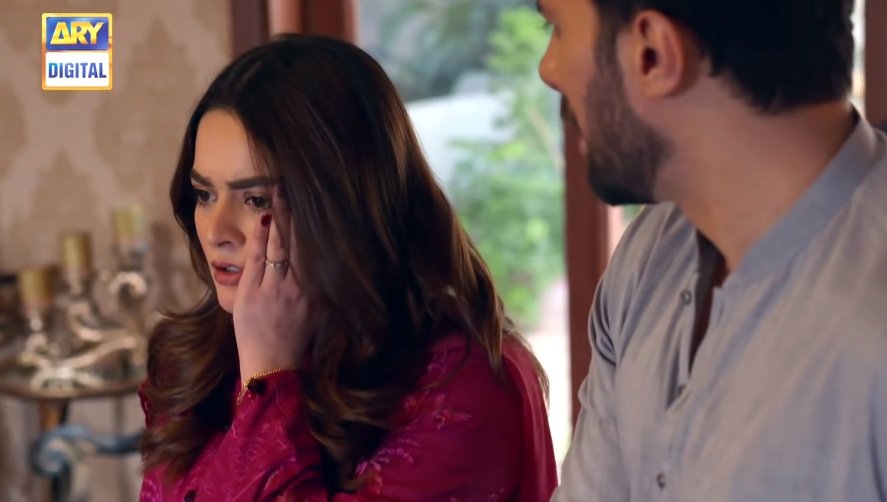 Nisha, seeing her sister’s expensive gifts and big house breaks her own engagement with Ahmer, accusing him of physically abusing her and playing the victim in front of Asfandyar to gain his sympathy.