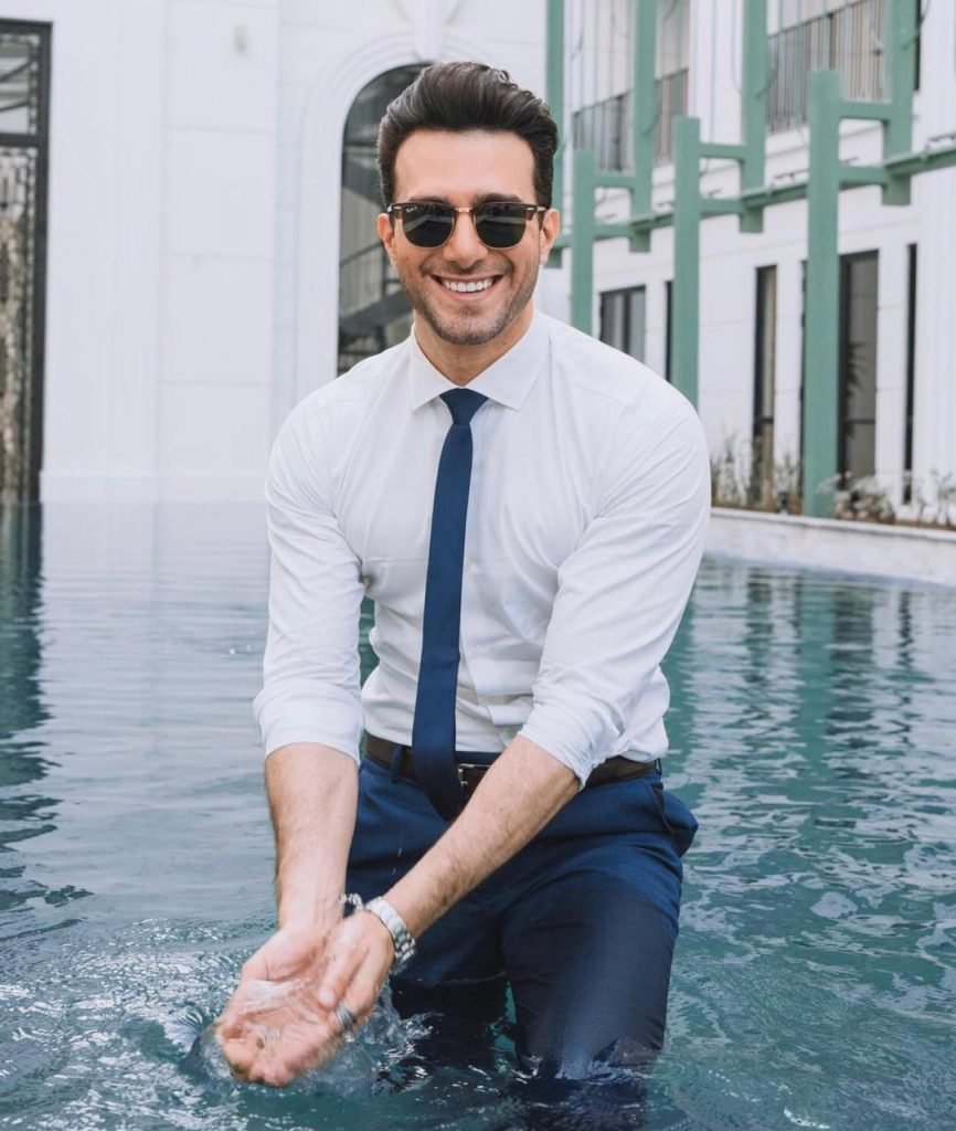 It all started with Emmad Irfani, who did an entire editorial shoot wearing dress pants and a dress shirt while standing in a pool.