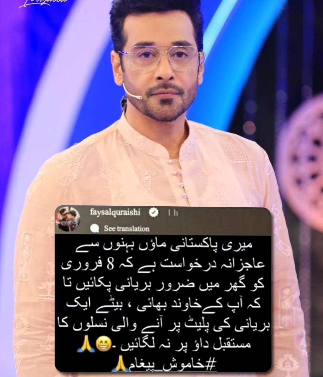 Faysal Quraishi has a special request for Pakistani women and it involves the one dish we all love. In an Instagram story discussing the upcoming 2024 elections, he asked women to cook biryani on February 8, the day the country goes to vote.