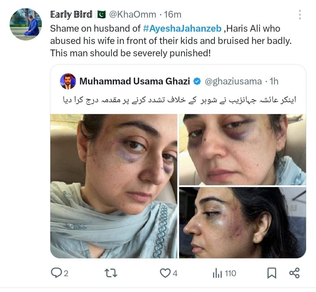 • Fans rally behind Ayesha Jehanzeb after domestic abuse incident