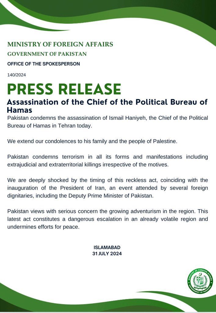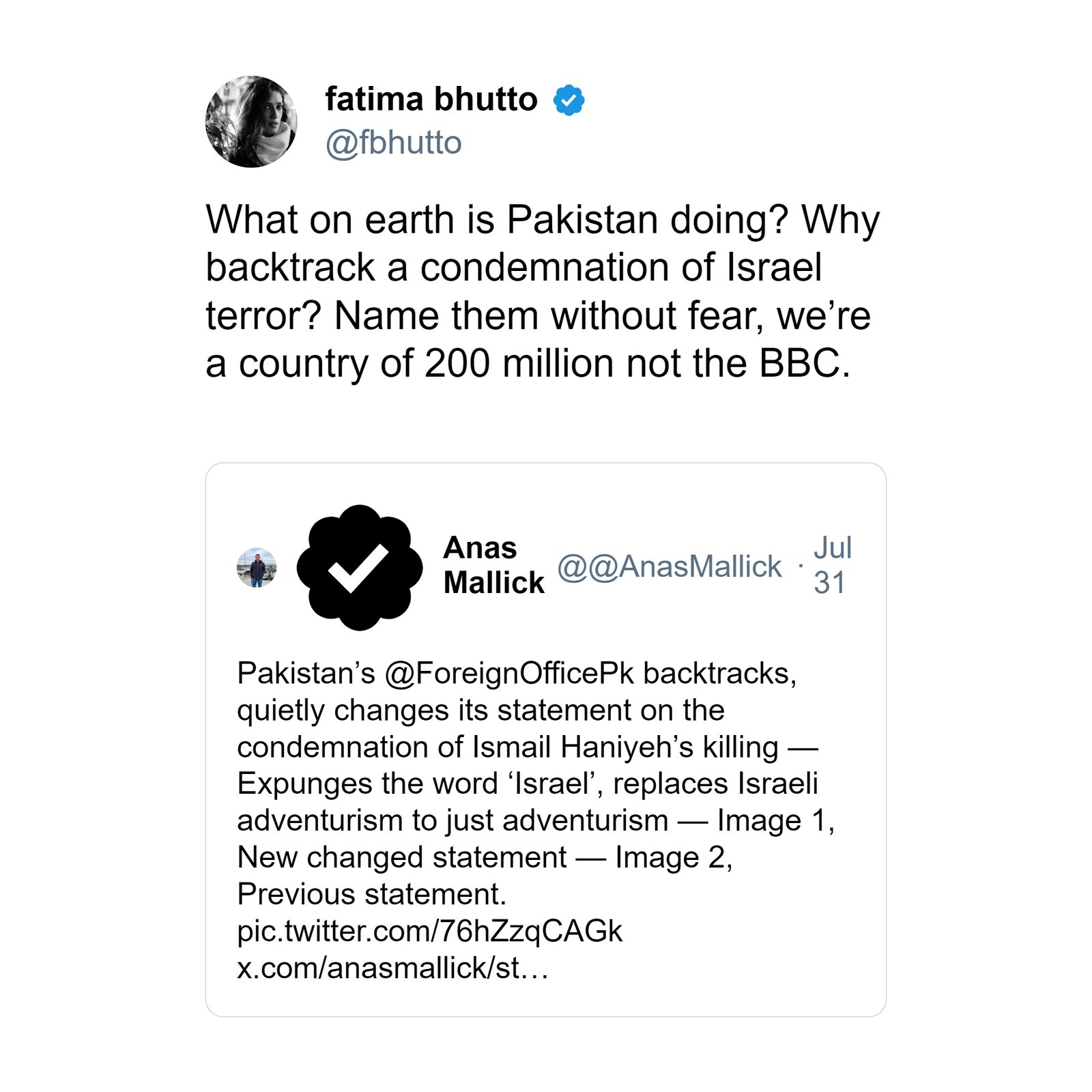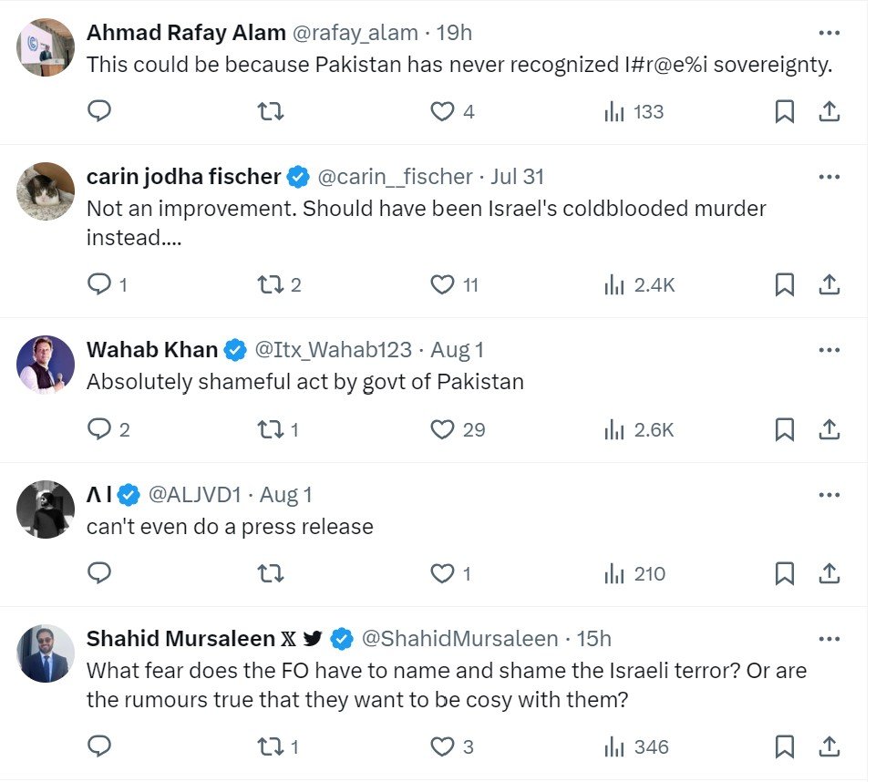 Meanwhile, FO Spokesperson Mumtaz Zahra Baloch clarified that she has no knowledge of any messages from any capital on this matter, as the positions of Pakistan and other countries on the issue are already known.