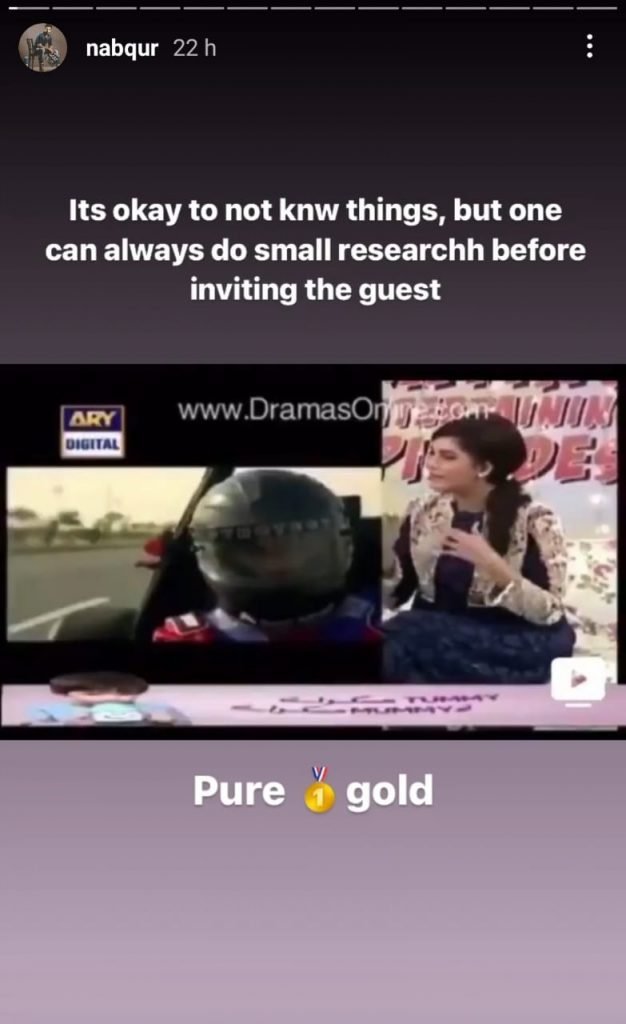 Actor In Law fame director Nabeel Qureshi criticised the morning show host, saying: “One can always do small research before inviting the guest.”