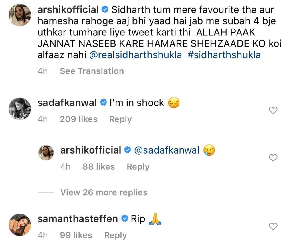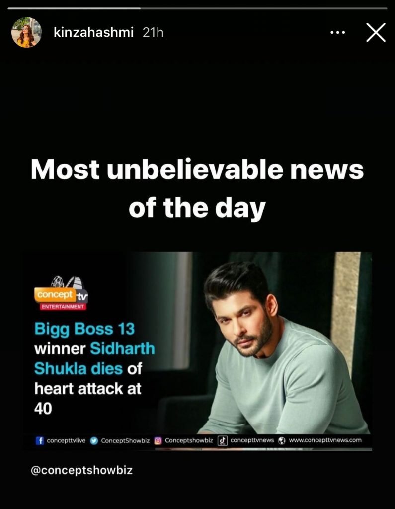 Pakistani actresses took to their Instagram handles to mourn the untimely death of the Humpty Sharma Ki Dulhaniya star.