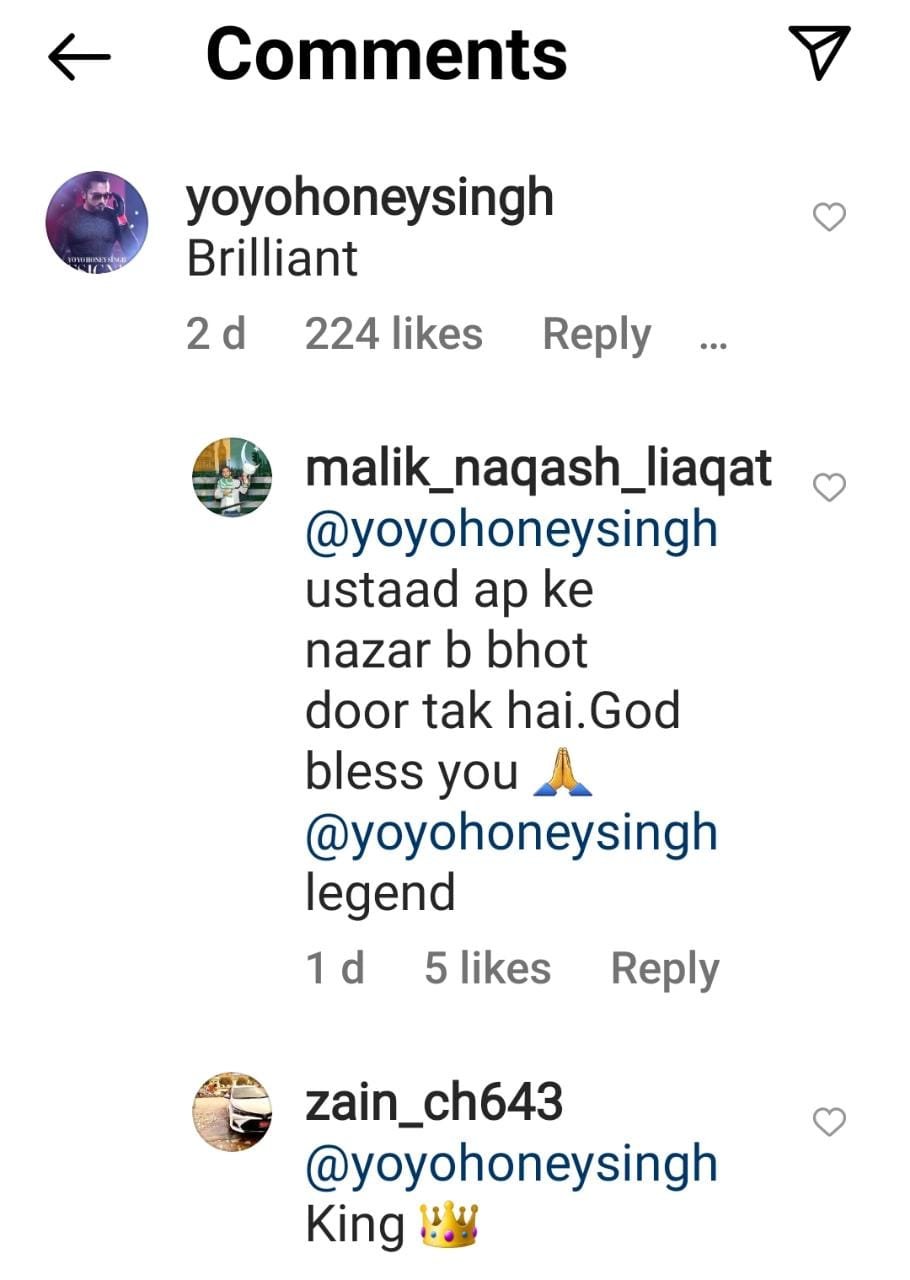 Bollywood singer Honey Singh commented on Mehwish’s training video: “Brilliant.”