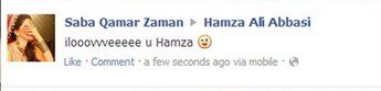 A drama page posted the comment along with Hamza and Saba’s picture on Facebook and after that rumors about Saba Qamar and Hamza Ali Abbasi being more than just friends surfaced social media.