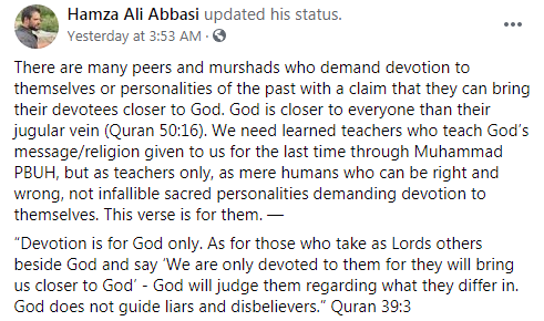 Actor Hamza Ali Abbasi has shared an important message regarding peers and murshads on his official Facebook handle.
