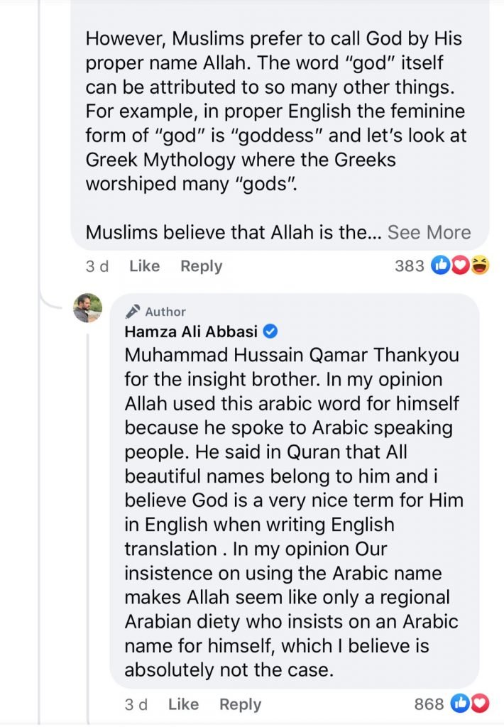The Mann Mayal hero often preaches the teachings of Islam via his social media.