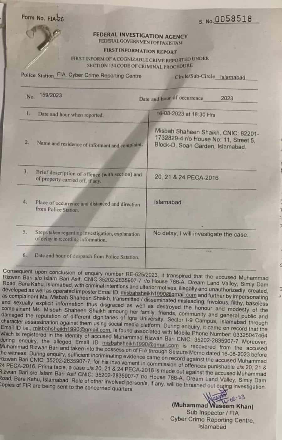 Dr. Hira then submitted a leave application after being removed from her post, but Dr. Ikram did not accept her request and kept it hanging for days, directing administration officers to do likewise.