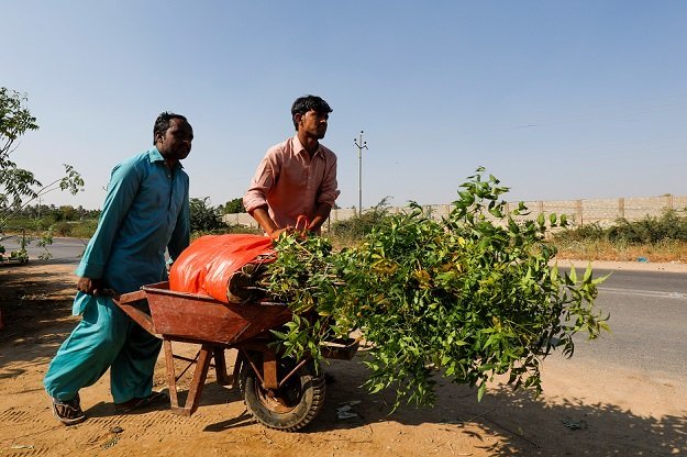 A retired industrialist from Karachi sent thousands of saplings to Iraq on Friday to bring shade to pilgrims.