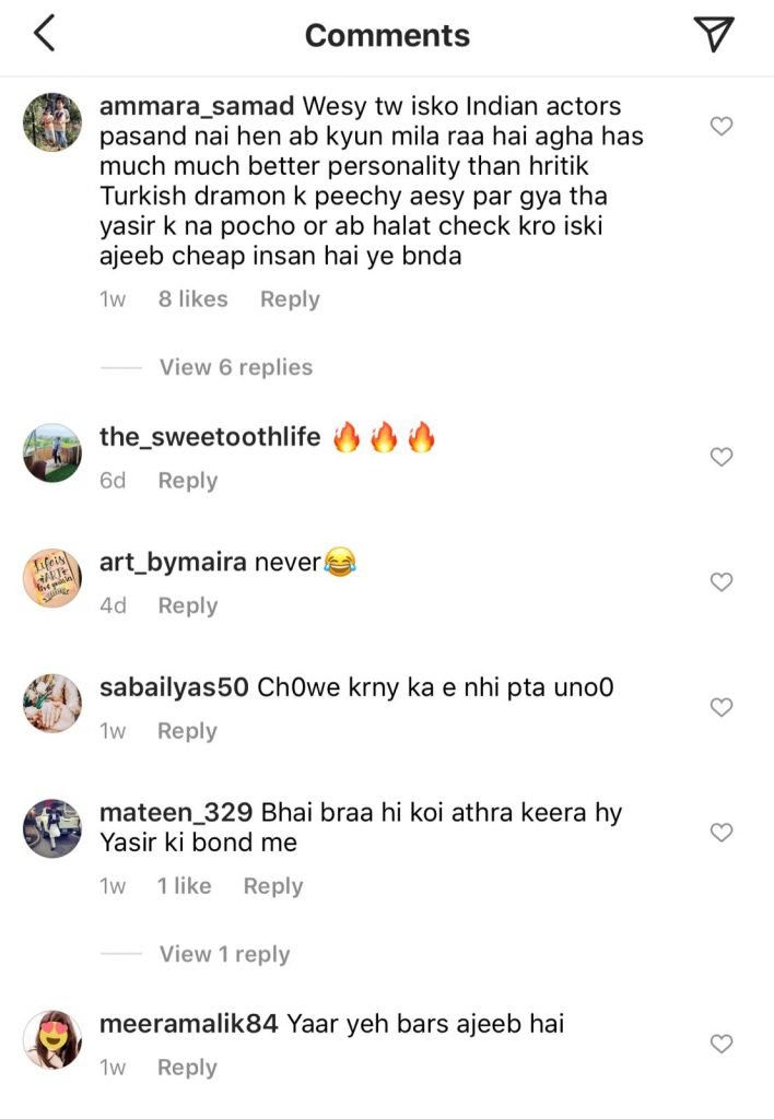 Netizens have trolled actor Yasir Hussain for his statement on Aagha Ali’s looks. The Jhooti star commented under a picture of Mere Meherbaan hero and stated that he is better looking than Bollywood superstar Hrithik Roshan who is termed to be a ‘Greek God’ by Indian media.