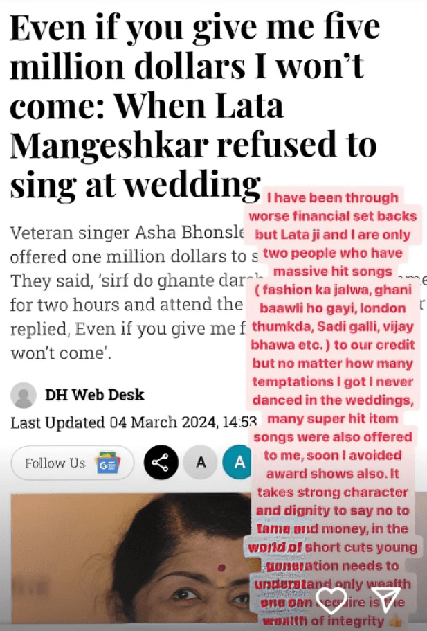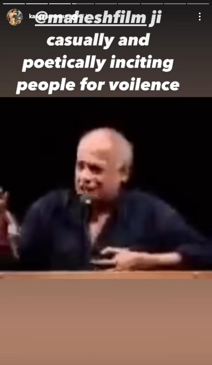 Kangana shared her Instagram story with the caption, “It is great that children from film families are going beyond just wanting to wear makeup, lose weight, doll up and think they are actors.”