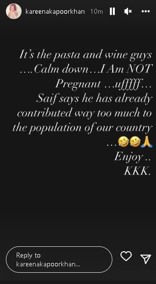 The talented actress faced speculation after a picture of her and Saif from their recent family vacation in the UK was widely shared online. “It’s pasta and wine guys… Calm down… I am not pregnant,” the actor wrote on Instagram as she denied rumours she was expecting.