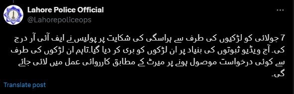 Activist Shama Junejo pointed out that the girls come from an influential background. Lahore Police’s Twitter handle replied to her, “On July 7, the police registered an FIR on a harassment complaint by the girls. Today, based on video evidence, these boys were acquitted. However, if any application is received from these boys, action will be taken according to merit.”