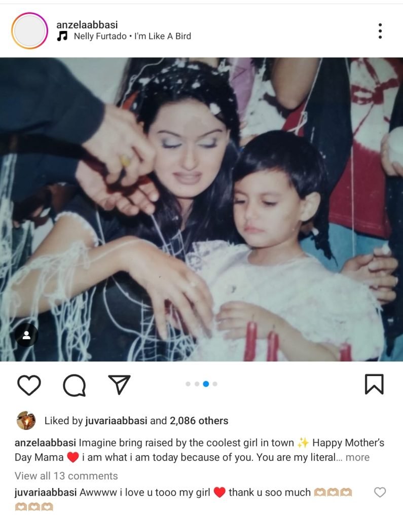 As Mother’s Day comes to pass, celebrities are using social media to show love for their moms, including actors, models, and musicians. One common theme in their posts is talking about family love. Veteran actress Nadia Jamil wrote a heartfelt letter to her mom along with a montage of pictures, set to a Bollywood song.