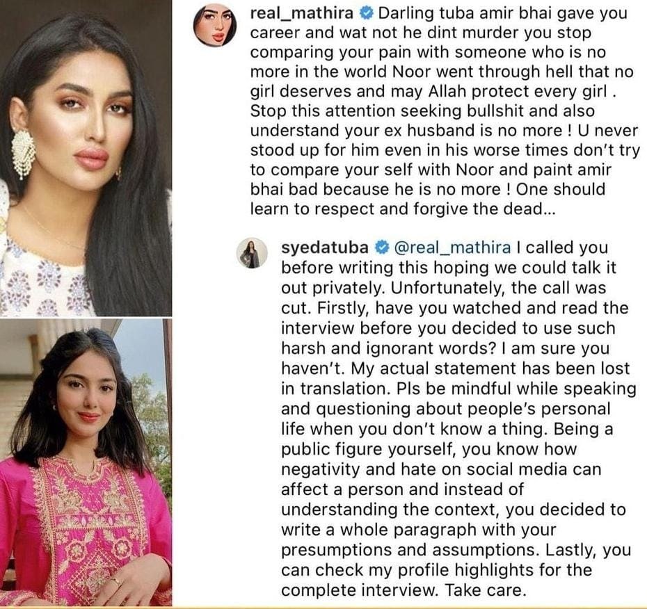 Tuba’s comment garnered backlash from fellow actor Mathira.