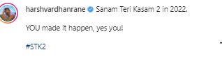 The Indian star announced it on his Instagram handle. “Sanam Teri Kasam 2 in 2022. YOU made it happen, yes you! #STK2,” he wrote.