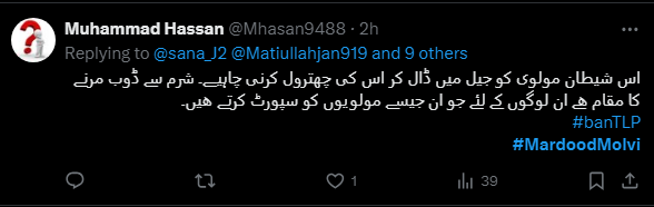 Mohammad Hassan expressed his anger over this song cum kalam by writing that this satanic cleric should be sent to jail and beaten for this. “It is a matter of shame for those who support these clerics.”