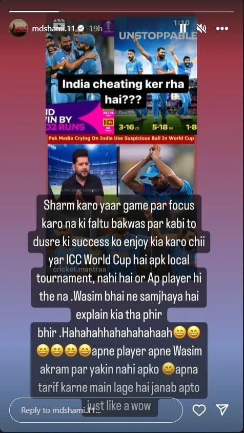 Indian fast bowler Muhammad Shami also shared the video of Hasan Raza’s viral clip on his Instagram story and wrote, ‘Shame on you, focus on the game and not on unnecessary nonsense, sometimes enjoy the success of others, this is an ICC tournament. , not your local tournament, you were the player, right?’