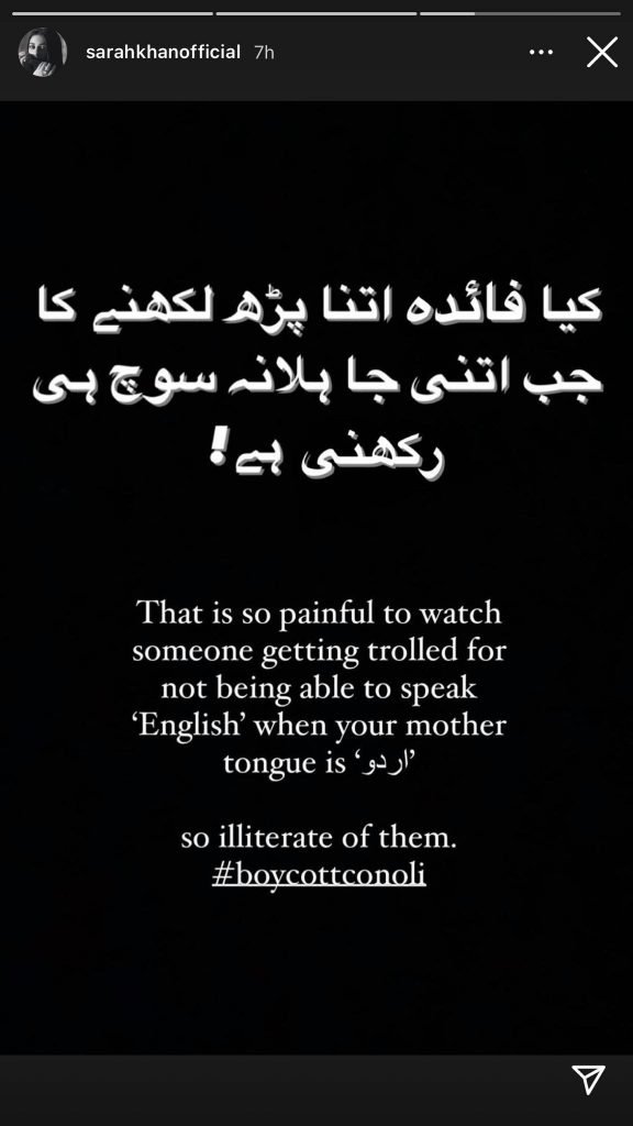 Stylist Anila Murtaza shared an Instagram story with a thought bubble with the name ‘Sana’ in it, and makeup artist Ikram Gohar stated that he knew it was none other than Sana Javed being discussed, calling her a “horrible and unprofessional actress.” Make-up artist Rhyan Thomas applauded those speaking up, sharing that he had the worst experience working with the star, stating that “people like them think no end to themselves.”
