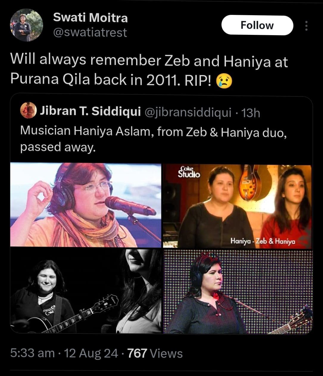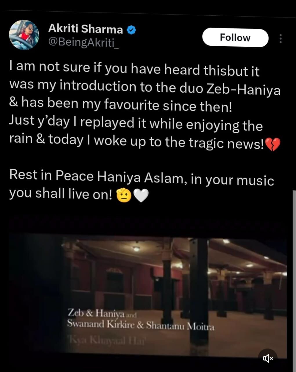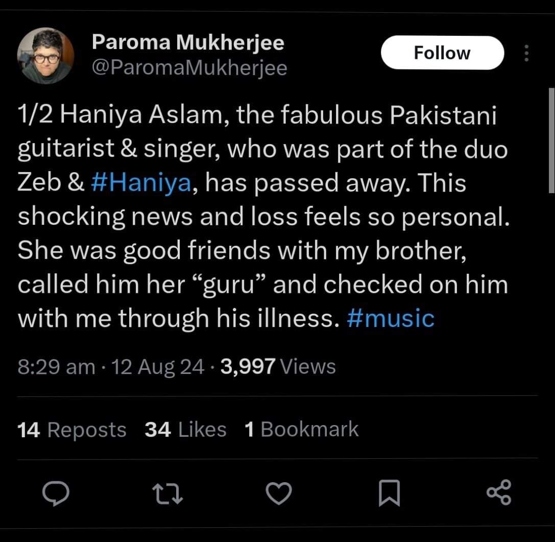 Indian fans are expressing deep sorrow and paying heartfelt tributes to renowned musician Haniya Aslam, who recently passed away. The news of her death has resonated deeply across borders, touching the hearts of many in India who admired her work.