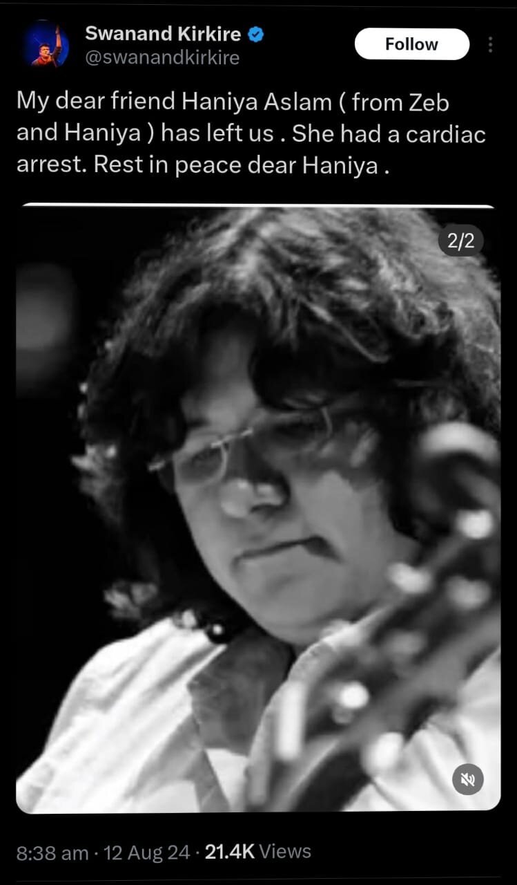 Aslam, best known for her role in the iconic duo Zeb-Haniya, had a significant impact on music lovers worldwide. In India, her unique blend of traditional and contemporary sounds won her many admirers. Fans have taken to social media to share their condolences and celebrate her remarkable contributions to music.