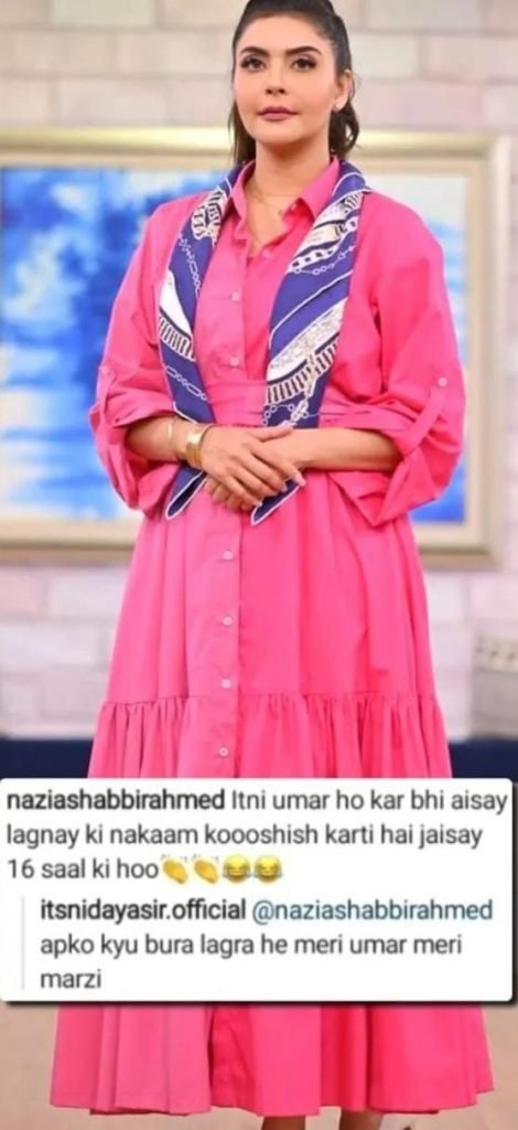 Nida confessed, “I realized i shouldn’t have called her auntie on the sets but I used to do it out of respect, even with other actresses like Bushra Ansari and Rubina Ashraf.”