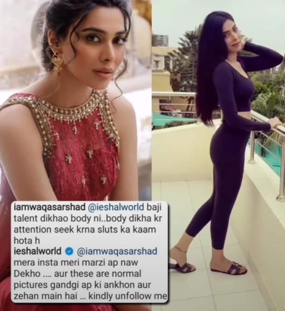Eshal replied to him by saying that it is her social media account and he can unfollow her. She also stated that the dirt is in his mindset and not her post.