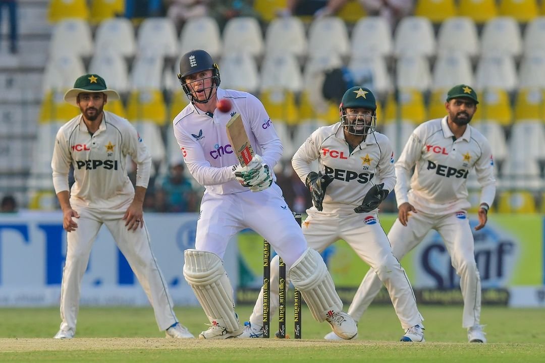On the third day, England started their second innings at 24 for 3 with Joe Root on five and Harry Brook on 3. Noman Ali dismissed Harry Brook for 26 and then sent captain Ben Stokes back to the pavilion for just three runs.