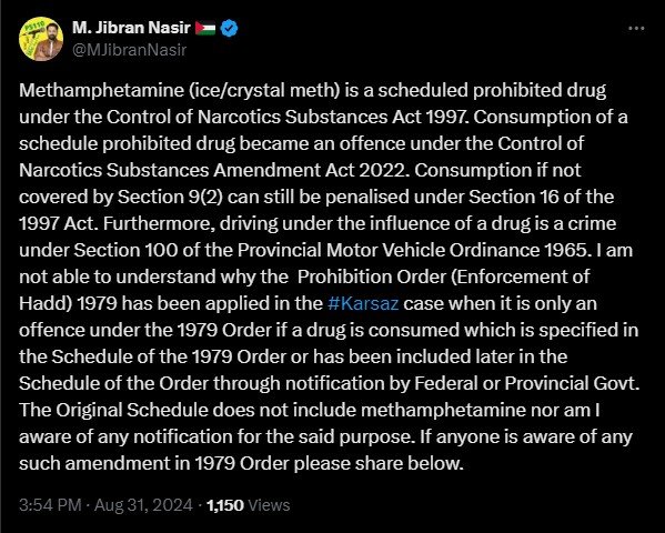 The order, given today by Judge Mohammad Raza Ansari, said that Danish’s lawyer could not satisfy the court regarding section 11 (drinking liable to tazir) of the Prohibition (Enforcement of Hadd) Order (PEHO) of 1979 stressing that the claim of blood and urine samples being manipulated was false.