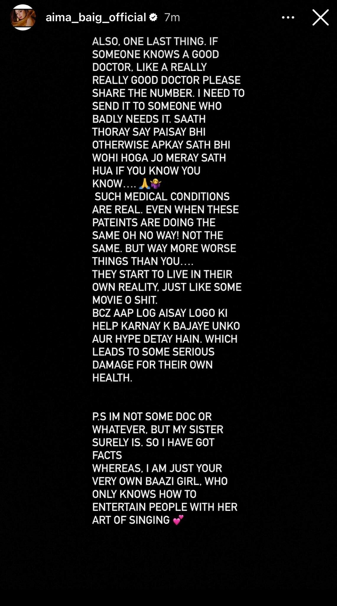 “PS I’m no some doc or whatever. But my sister surely is. So I have got facts. Whereas I am just your very own baazi girl who only knows how to entertain people with her art of singing.”