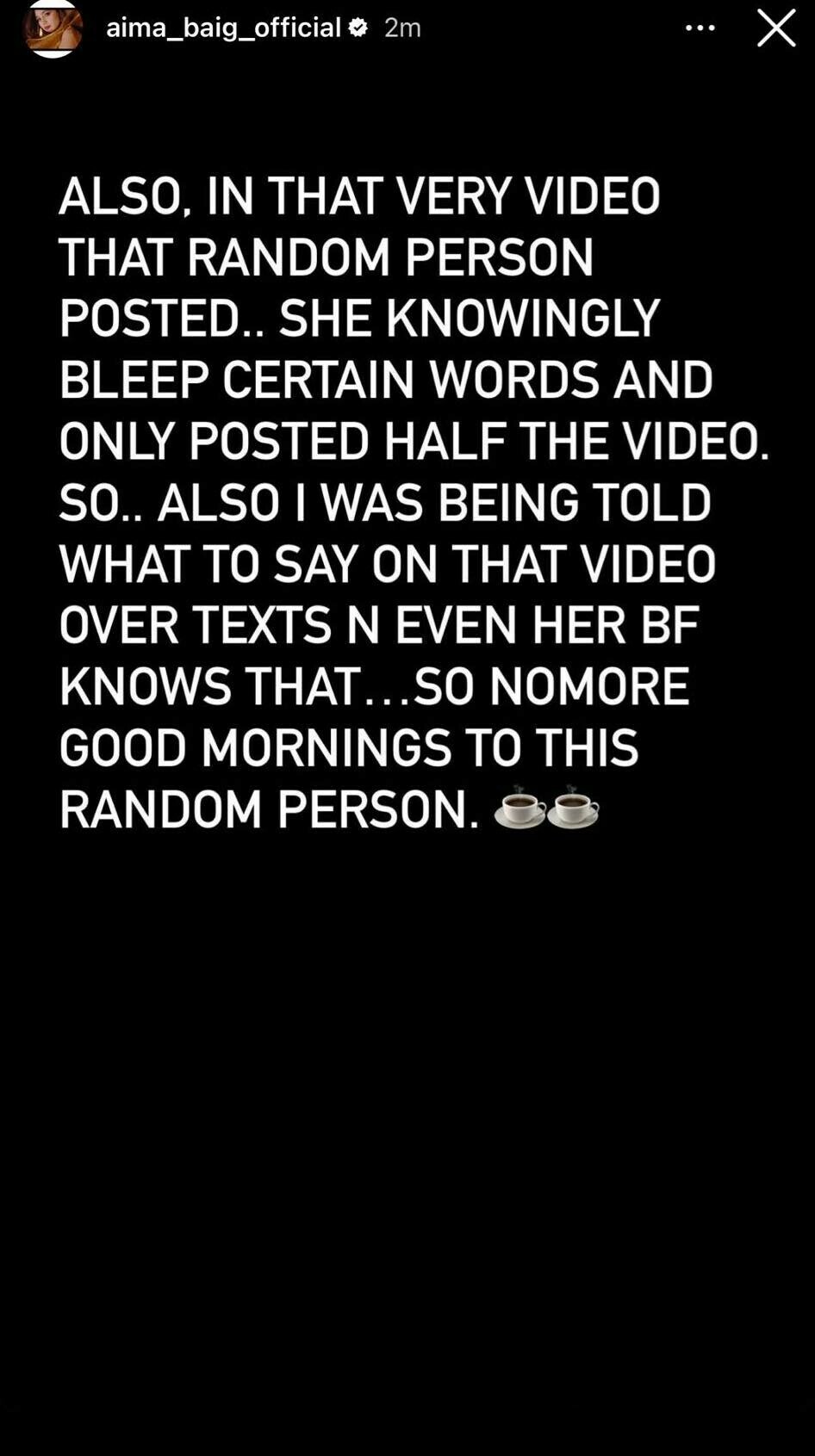 Now Aima has broken her silence on the controversy in a series of Instagram stories.