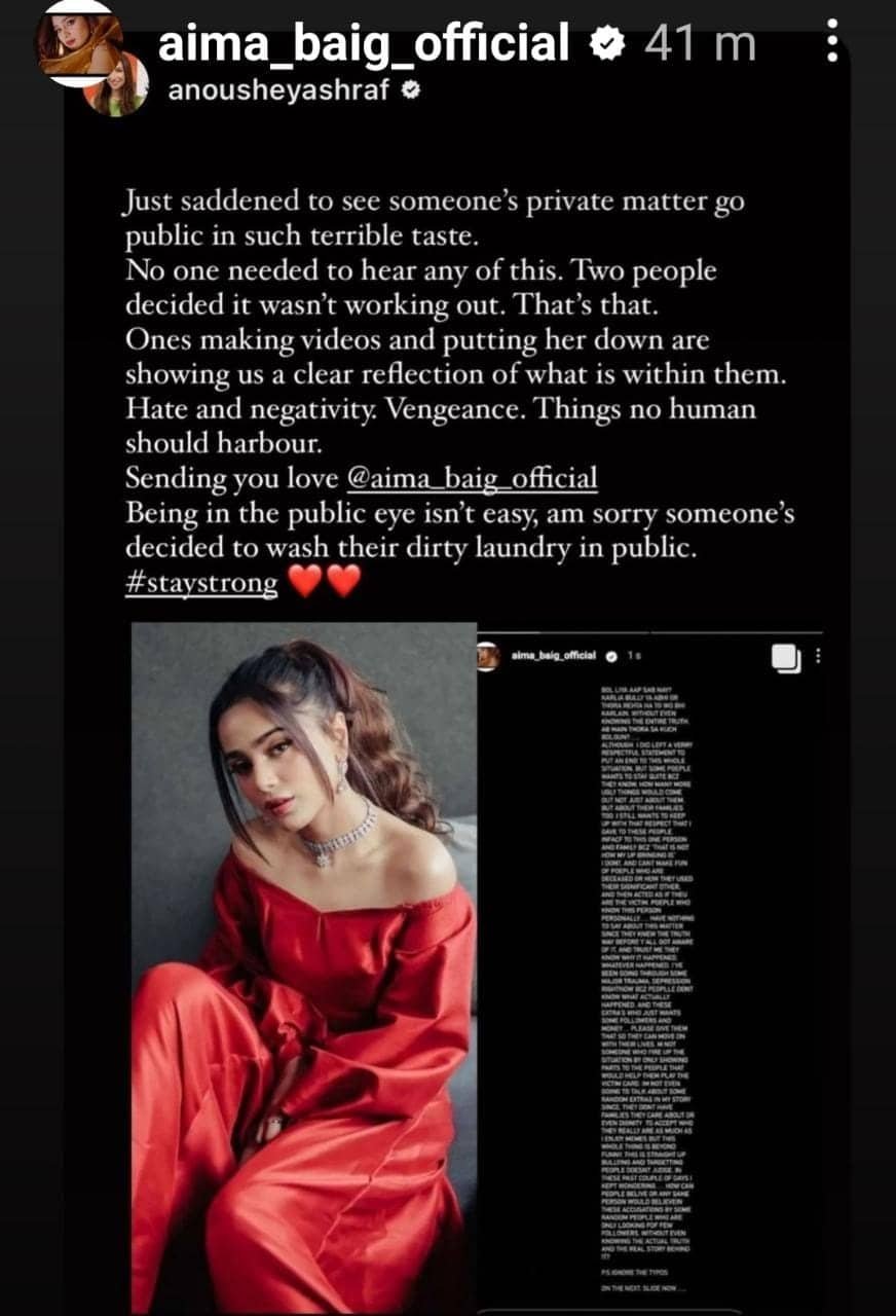 After Aima shared her side of the story, fellow female artists like Mathira and Anoushey Ashraf extended support to her.