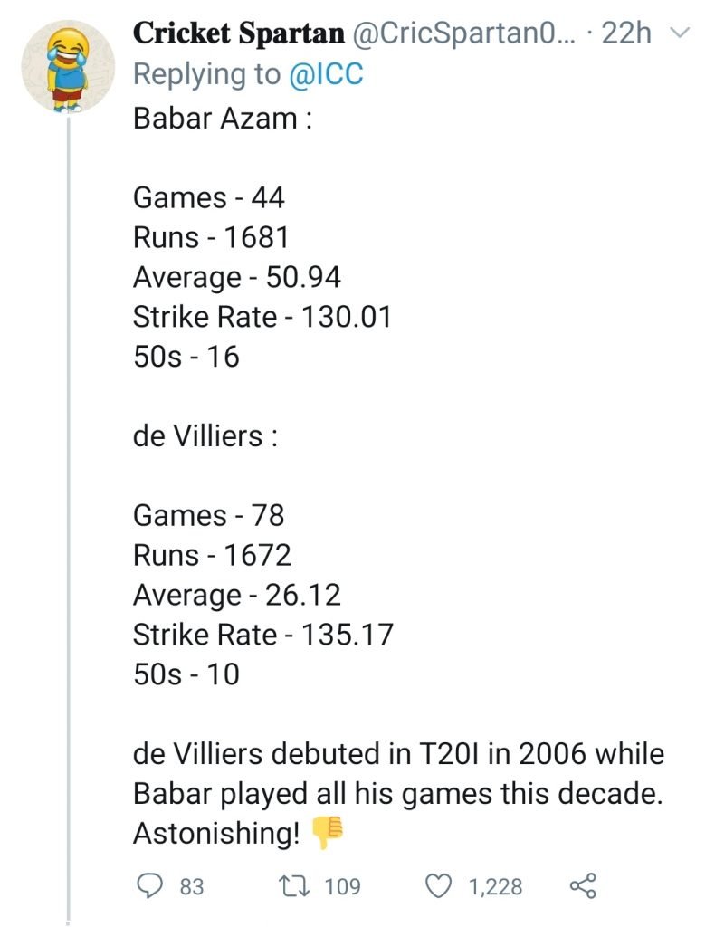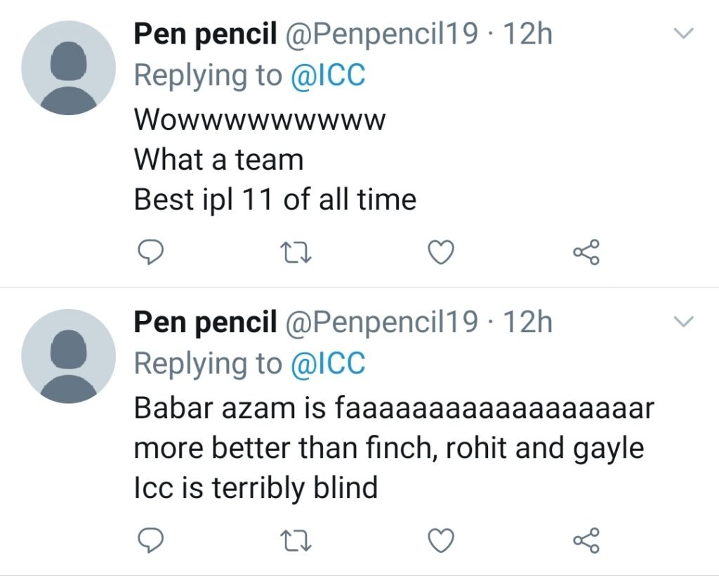 “I think ICC forgot that Pakistan is also a member of ICC and they also play T20I cricket. They did not pick Babar Azam, who is currently the number one batsman in the ICC T20I rankings.”