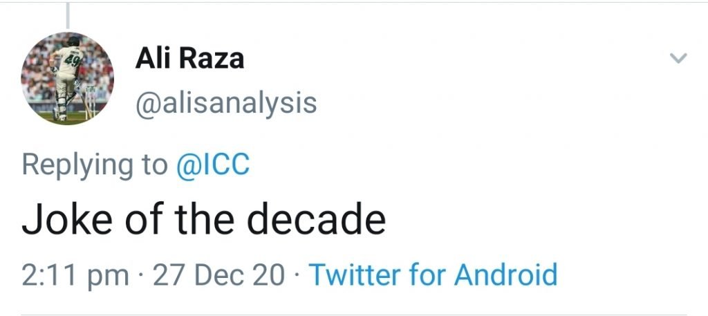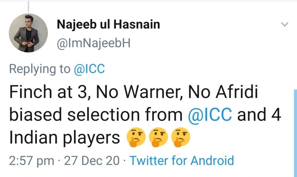 Meanwhile, Pakistan cricket fans and analysts are enraged and questioning ICC for not including any Pakistani cricketer in the list. Here are some reactions: