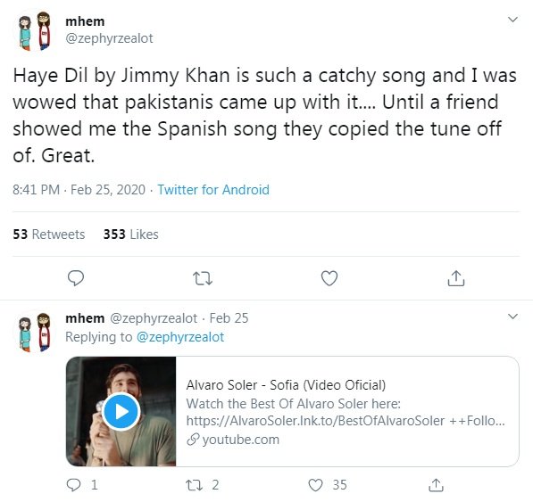 OK so last year someone came out with the Spanish song that Haye Dil Bechara is supposed to sound like. Amazes me that the same story has turned up again and publications and websites are using it as if it’s new! Come on guys!https://t.co/r8Pc0NY1RL