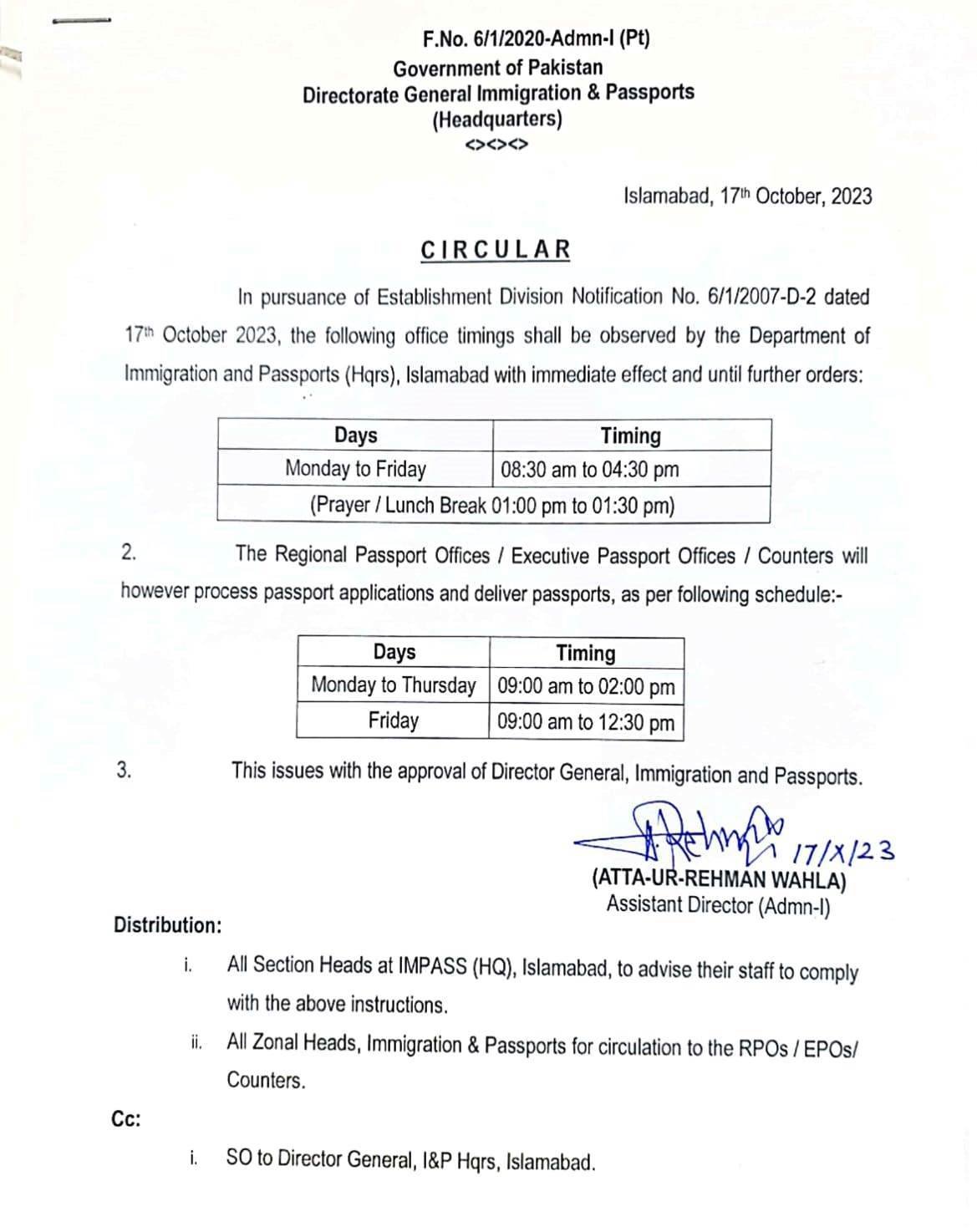 Simultaneously, the Federal Ombudsman directed the secretary interior to comprehensively assess the functioning of the Directorate General of Immigration and Passports to ensure more efficient service delivery in the future.