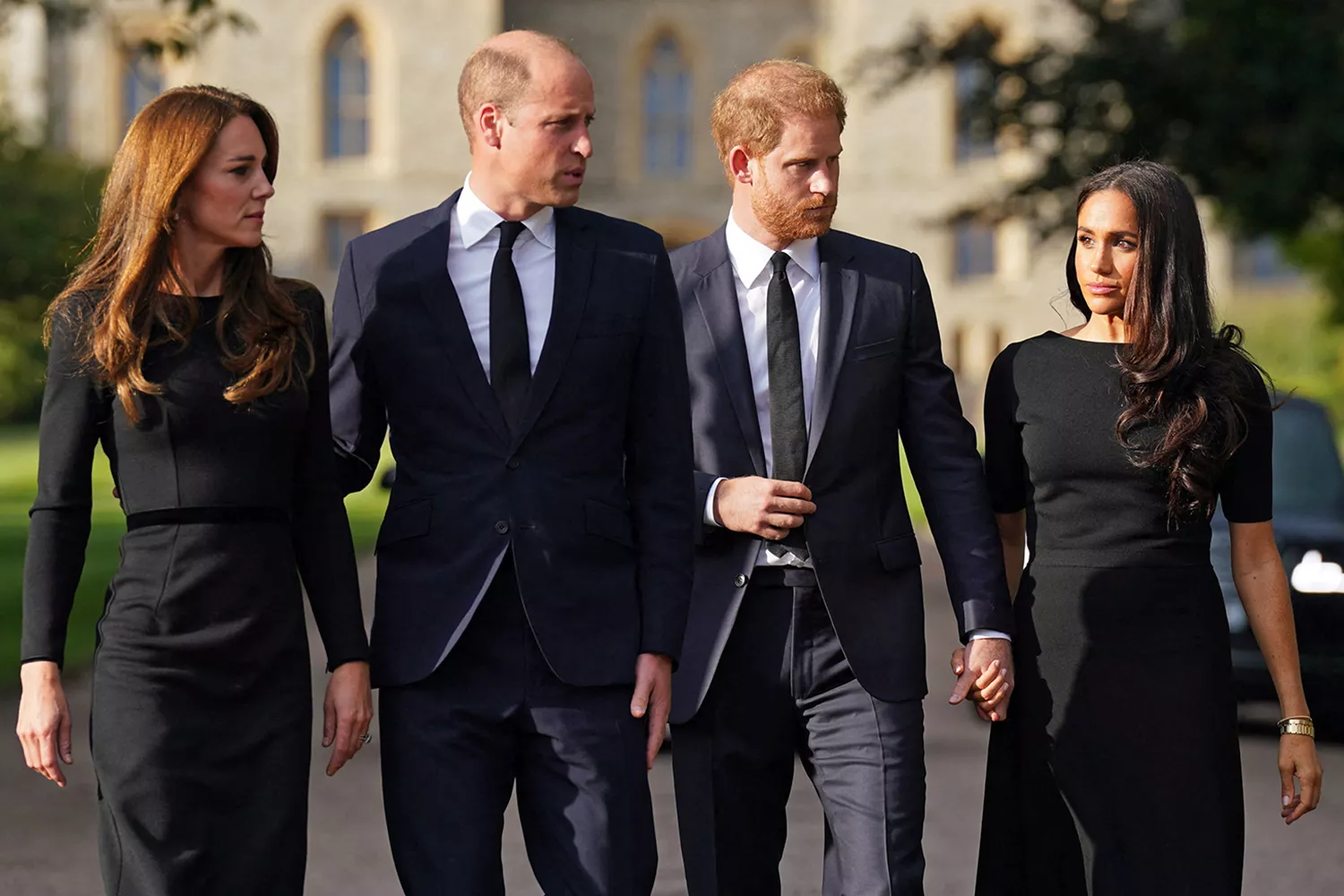 Kate Middleton, Prince William, Prince Harry and Meghan Markle on the long Walk at Windsor Castle on September 10, 2022. KIRSTY O’CONNOR/POOL/AFP VIA GETTY