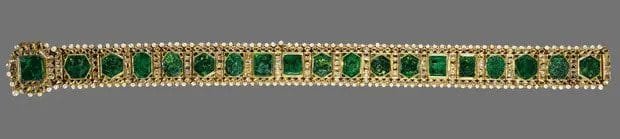 The gold girdle inlaid with 19 emeralds first came to the public’s attention during Buckingham Palace’s celebration of Prince Charles’ 70th birthday, with a display of his favorite pieces from the royal collection. The item had previously belonged to an Indian Maharaja, Sher Singh, who used it to decorate his precious horses.